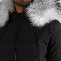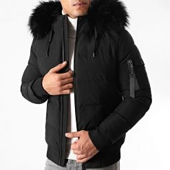 Promo 👏 Doudoune Capuche Poche Bomber Avec Fourrure Noir de LBO 🔥