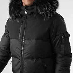Promo 💯 Doudoune Capuche Tech Puffer Avec Fourrure Noir Melange 0019 Noir de LBO 👍