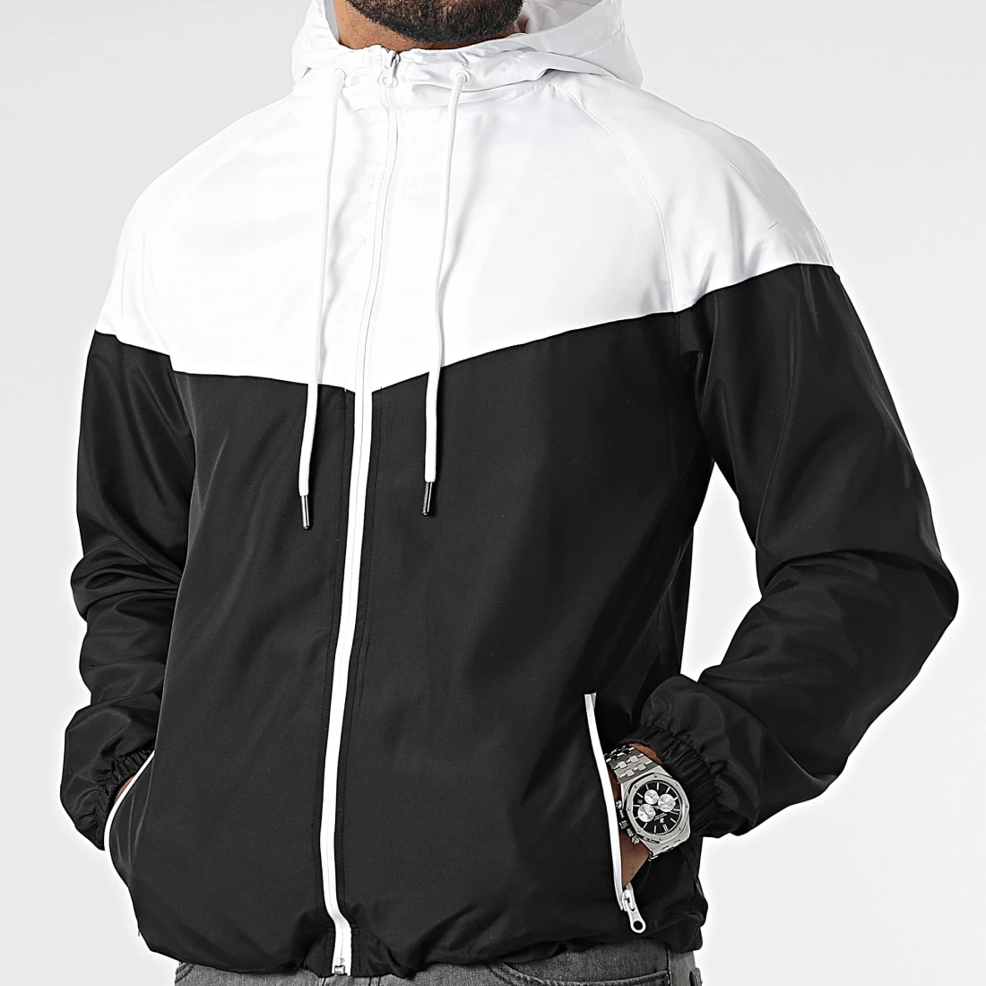 • Coupe-vent bicolore zippé à capuche