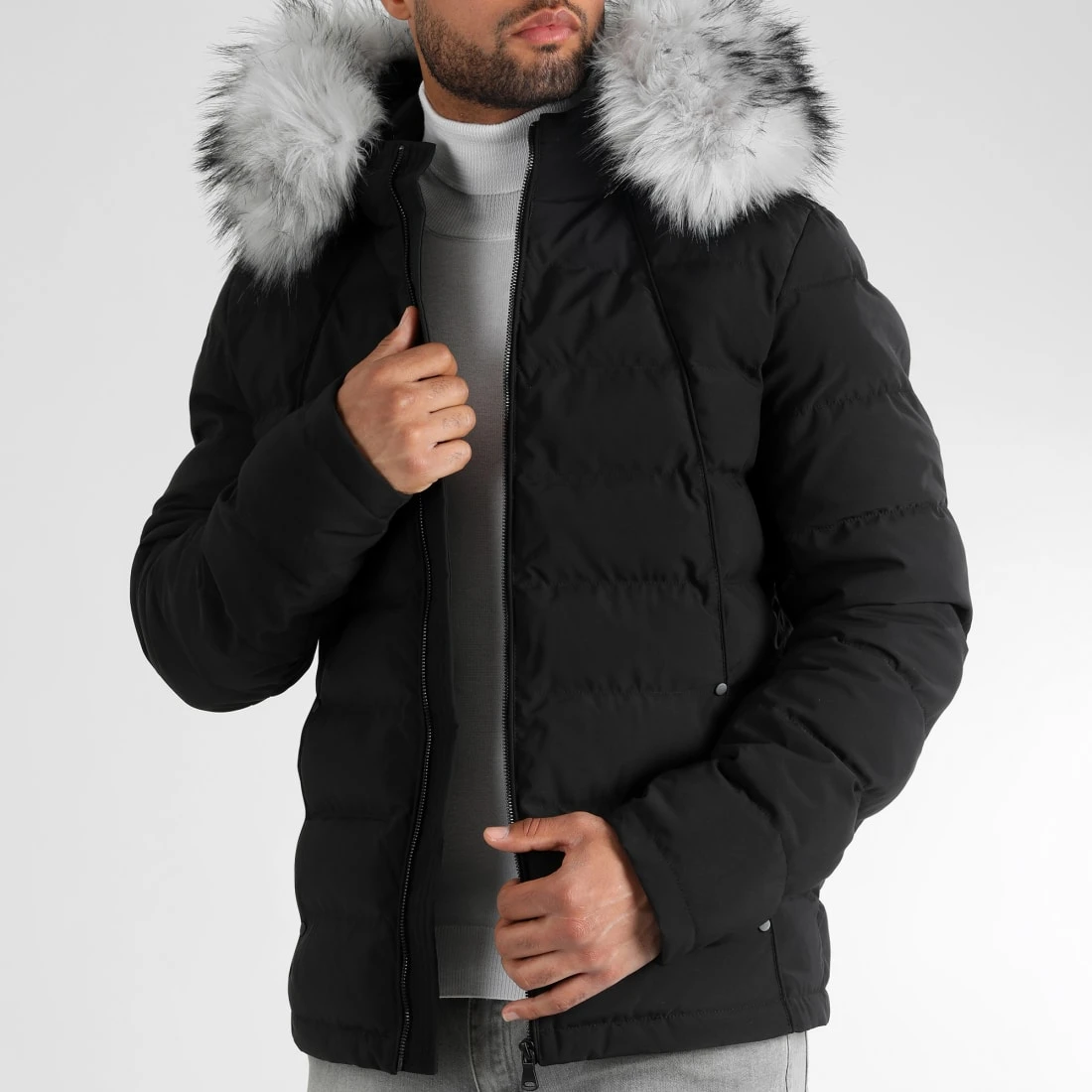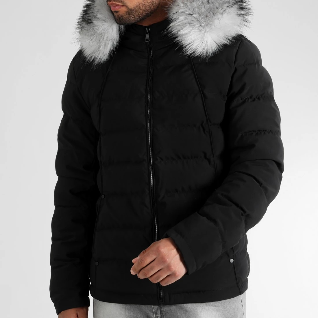 Remise 😀 Doudoune Racer Premium Avec Fourrure Grise 0061 Noir de LBO 😀