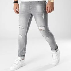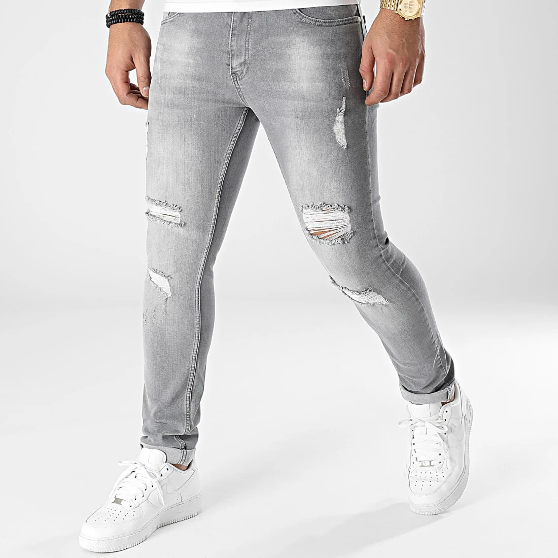• Jean slim finition usée et délavée avec trous apparents