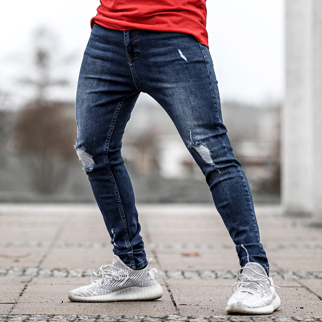 • Jean super skinny en coton stretch finition usée et délavée avec légers trous apparents
