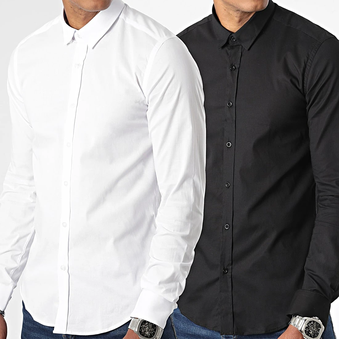 Top 10 ✨ Lot de 2 Chemises Manches Longues Slim Fit 2514 Blanc Et Noir de LBO 💯