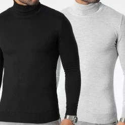 Coupon 👍 Lot De 2 Pulls Col Roulé 1006 Noir Gris Chiné de LBO 🎁
