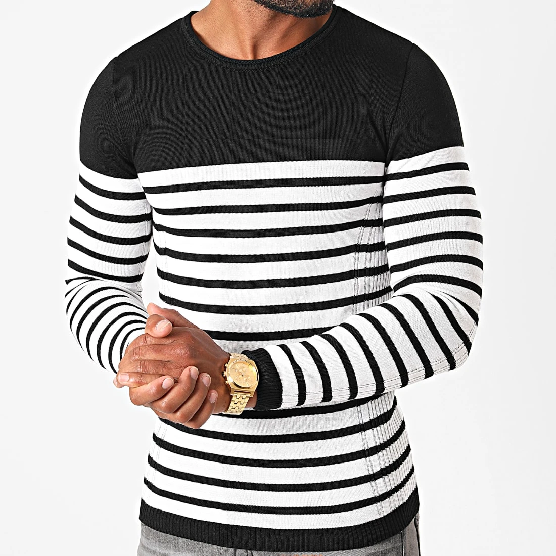 • Pull bicolore en maille fine à motif rayures