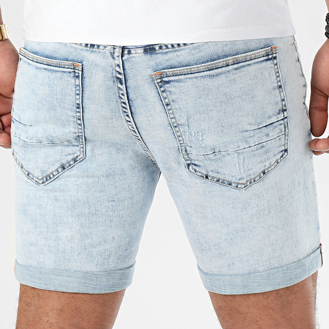 • Short jean stretch à finition délavée et déchirée