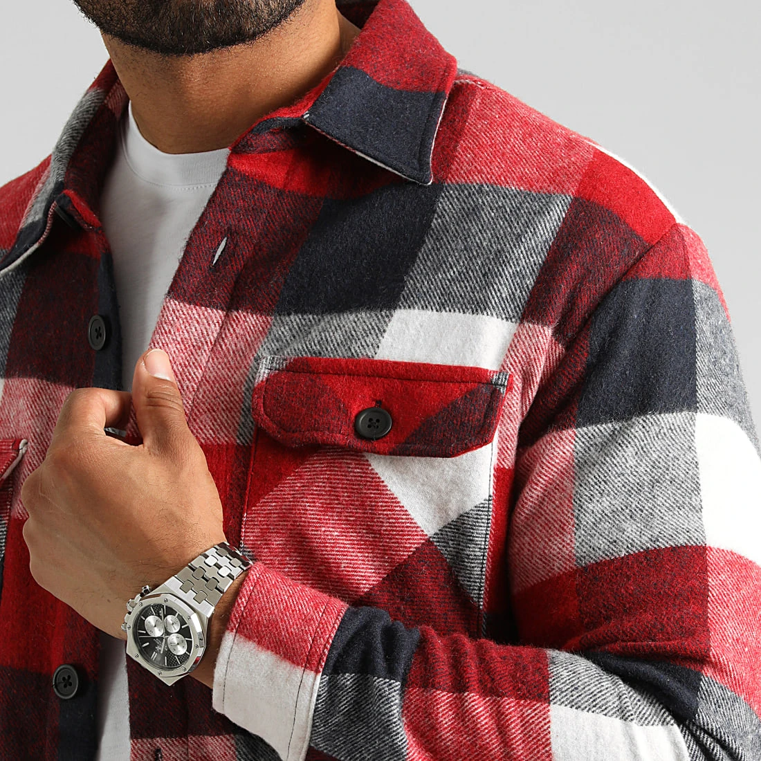 ⹠Deux poches poitrine boutonnées -