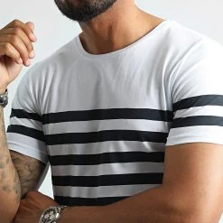 Les meilleures critiques de 🤩 Tee Shirt Ringer Avec Bandes Bleu Marine Rouge 2148 Blanc de LBO 👍