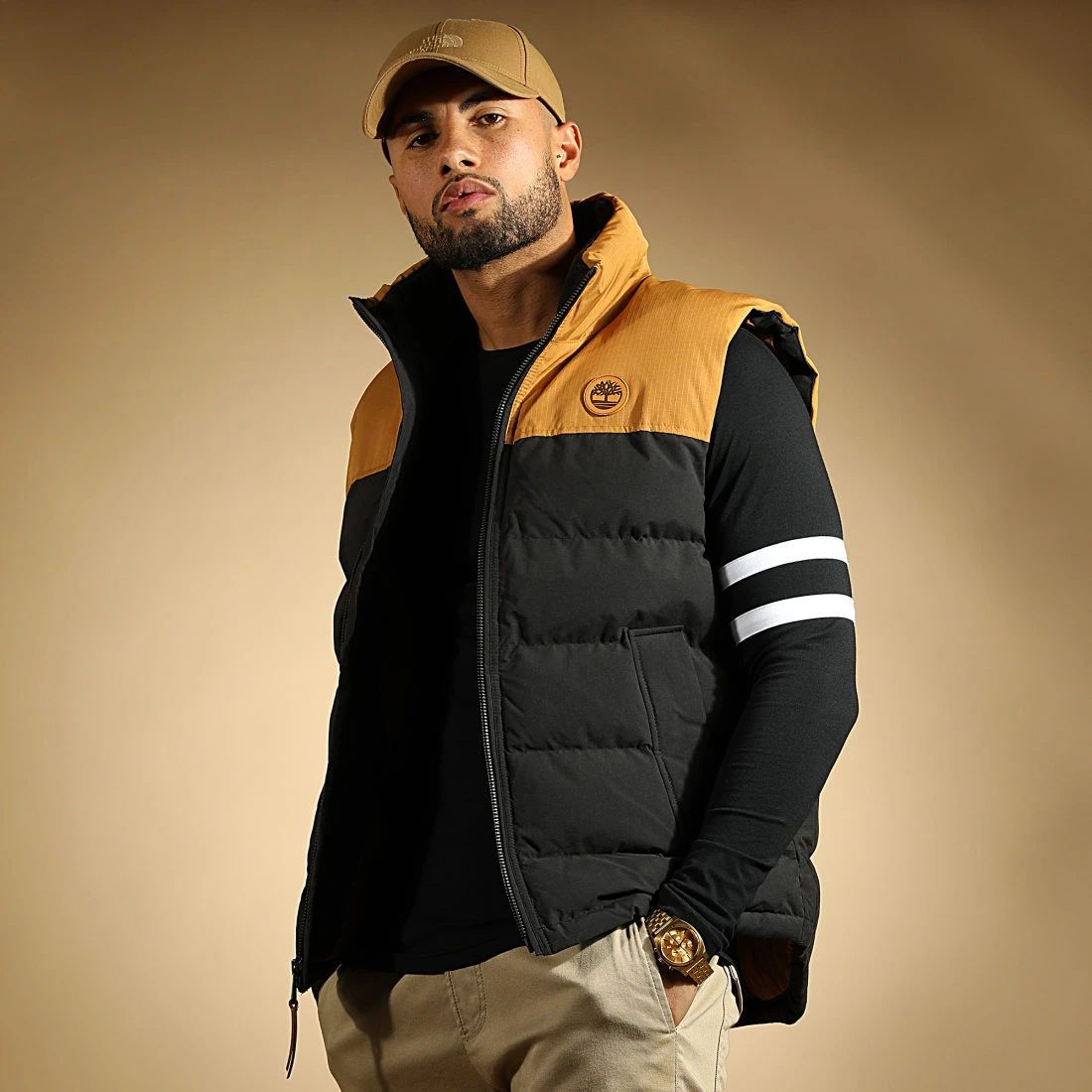 • Deux bandes brodées autour des manches