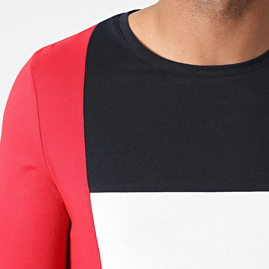 Grosses soldes 😀 Tee Shirt Manches Longues Tricolore 1819 Blanc Bleu Marine Rouge de LBO ✔️