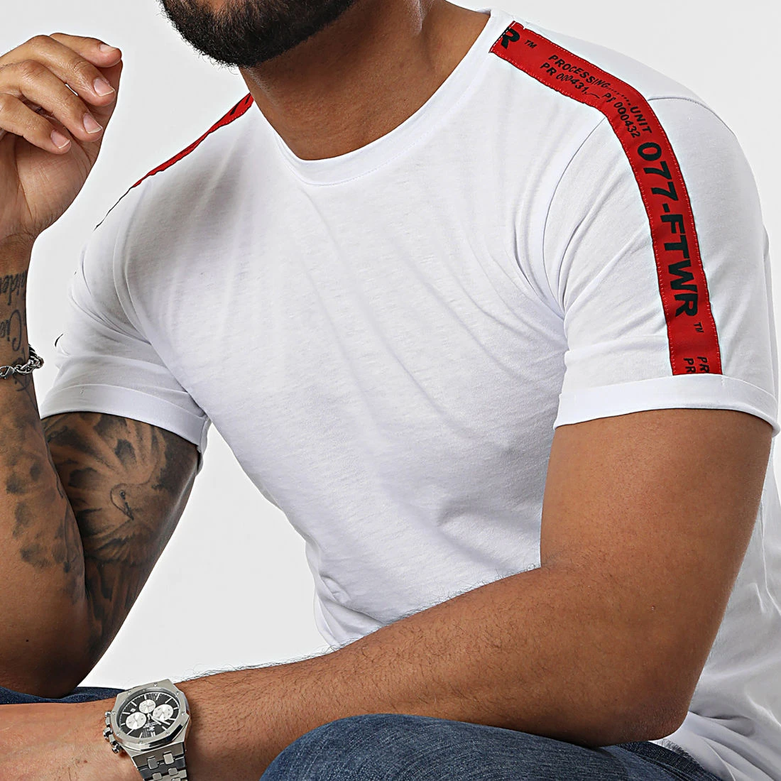 • Tee shirt en coton léger avec bande brodée sur les manches