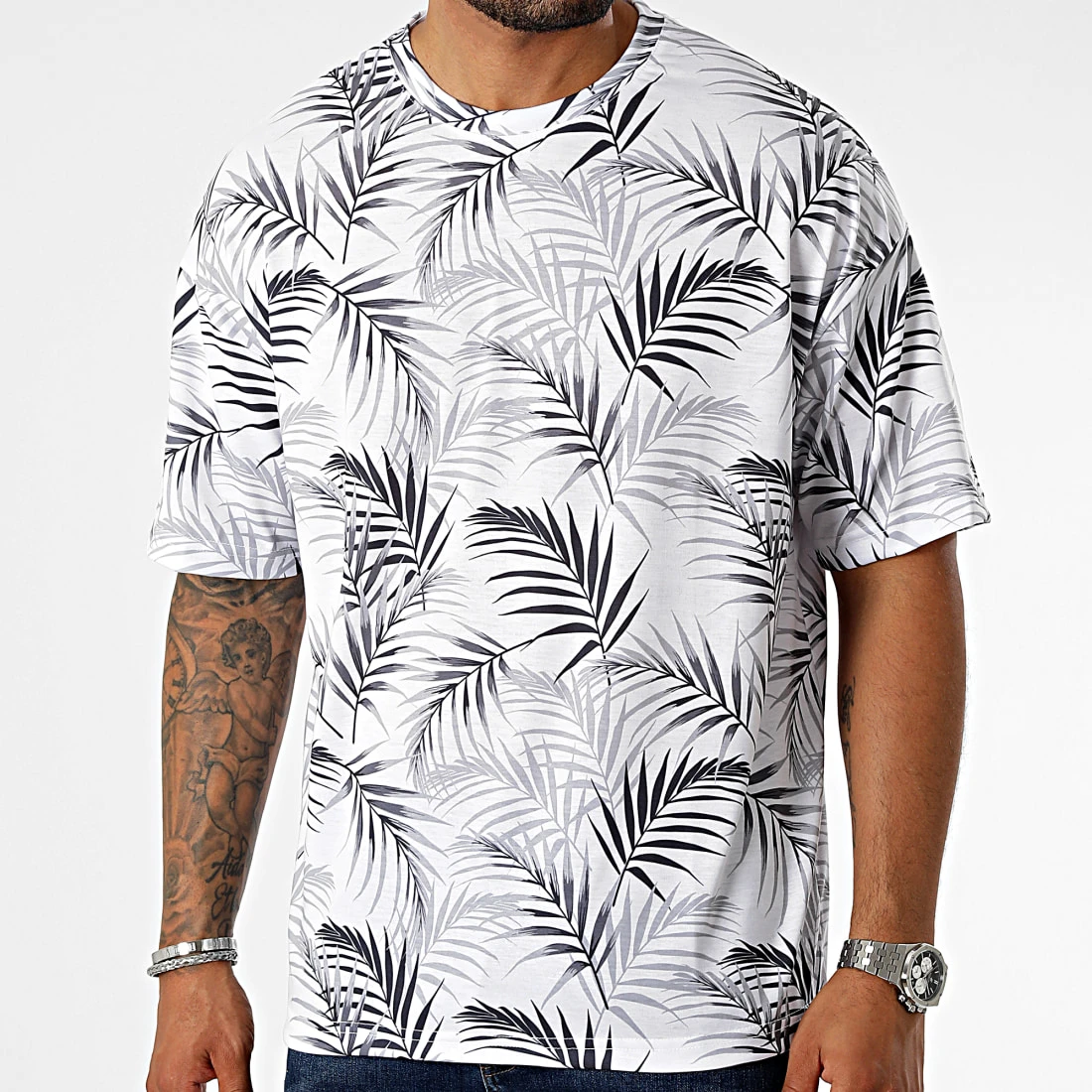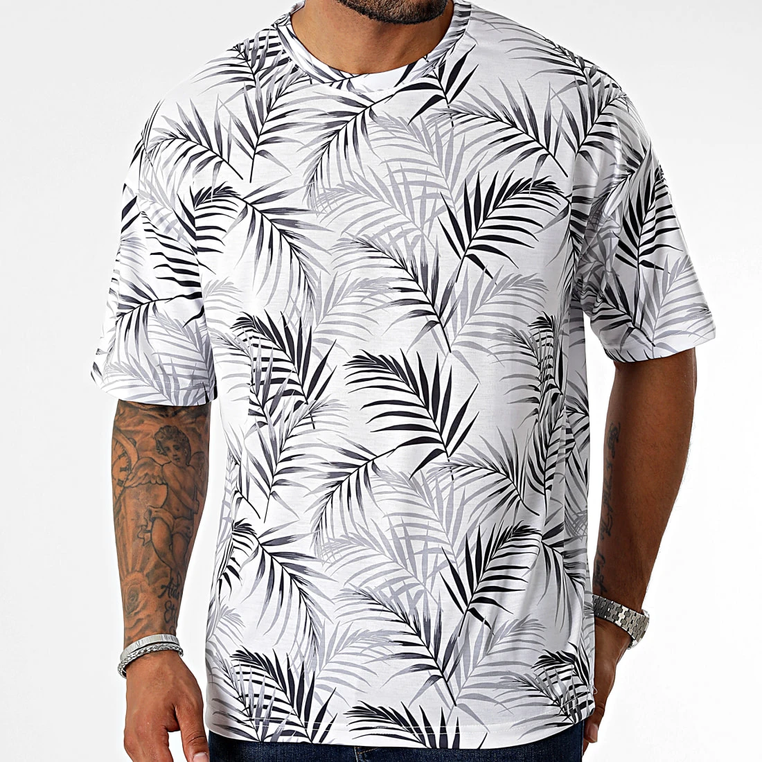 Bon marché ✔️ Tee 😍 Shirt Oversize Large Imprimé 2683 Tropical Blanc de LBO ✔️