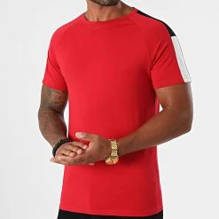 • Tee shirt à bandes bicolores aux manches