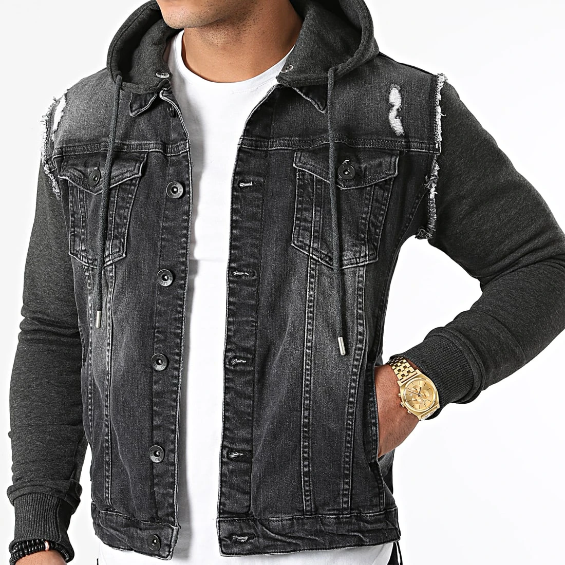 Meilleur prix 🛒 Veste Jean A Capuche 1517 Gris Anthracite de LBO 🥰