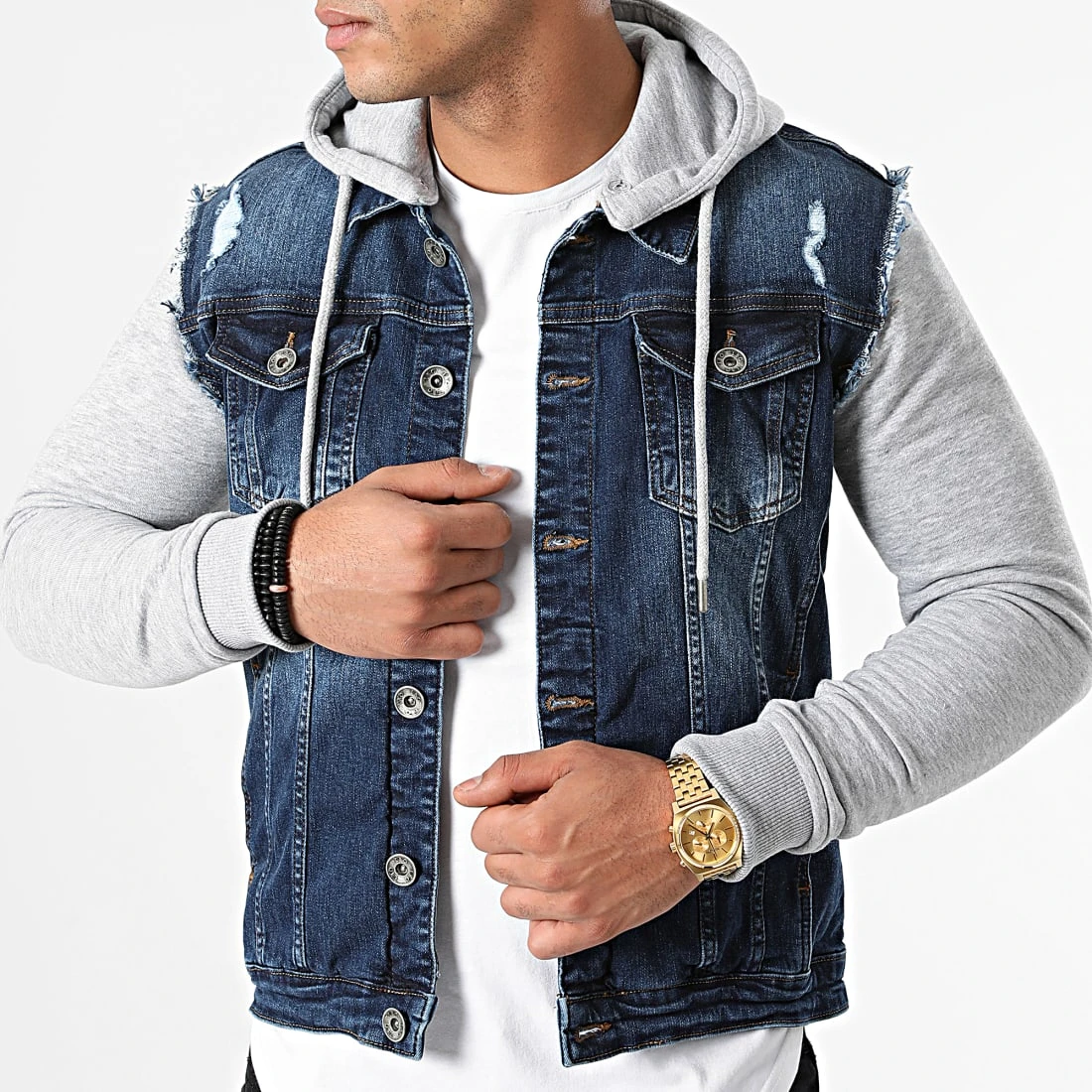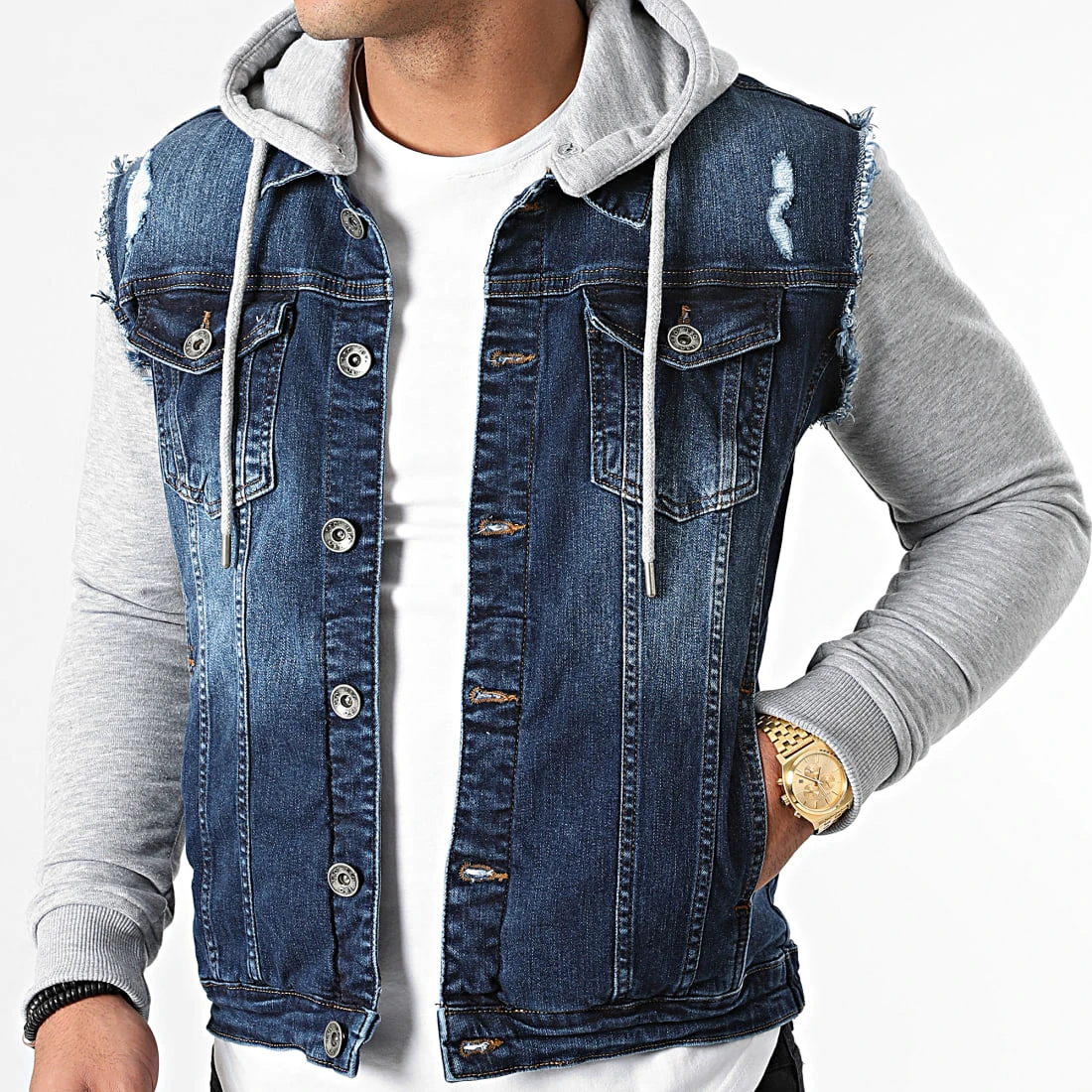 Meilleur prix ⌛ Veste Jean A Capuche 1522 Bleu Denim Gris Chiné de LBO ✔️