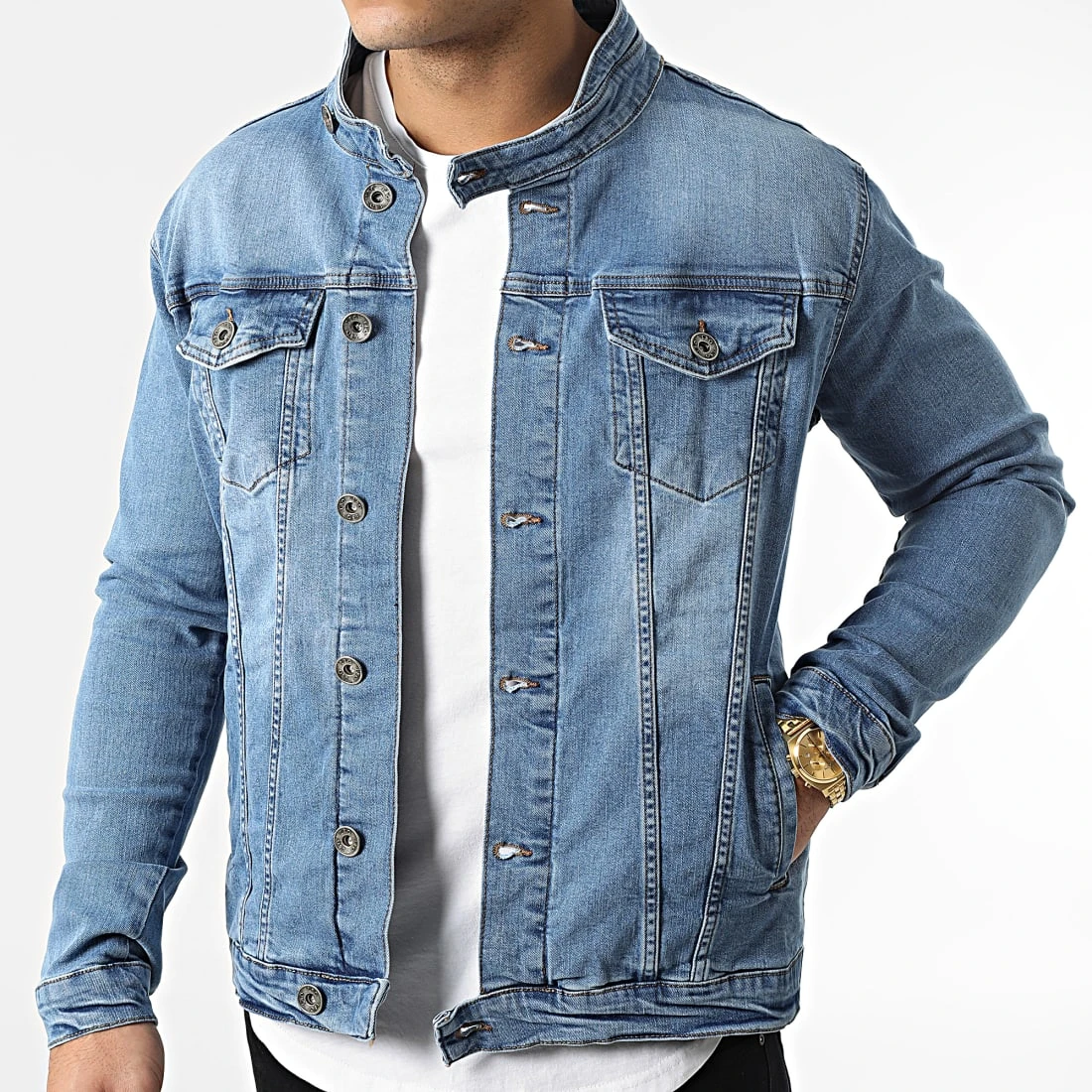 • Veste en jean délavée avec col biker