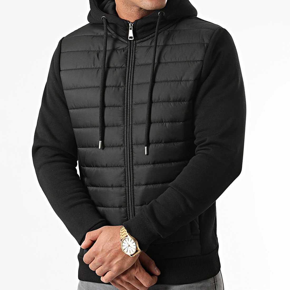 • Veste zippée bimatière avec capuche
